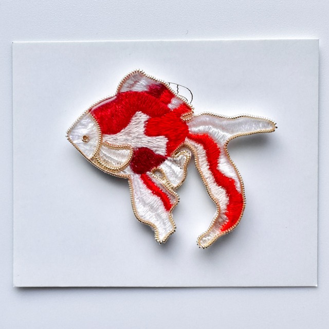 これはブローチです(金具は回転ロック式のコサージュピンにて仕立てます) サリーちゃんが一生懸命、一針ずつユカイに刺繍しました このアクセサリたちはすべて一点物、世界に1つずつしかつくっていません "いつでも敬服してる、そしていつでも畏れてる ぼくらでは敵わない、能力に ぼくらでは敵わない、美しさに" ※作品一覧トップにある【購入前に必ずご確認ください】を必ずご一読ください